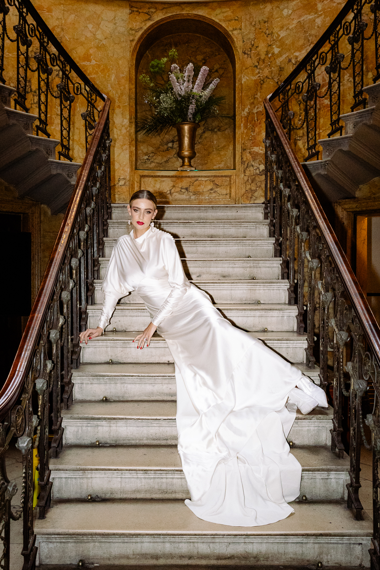 Home House in Soho, London, offered an exquisite backdrop for our bridal shoot, blending contemporary style with timeless elegance. The chic interiors complemented our bride, who radiated grace in a gown that fused modern design with classic elements, capturing the vibrant energy and luxury of the urban setting.